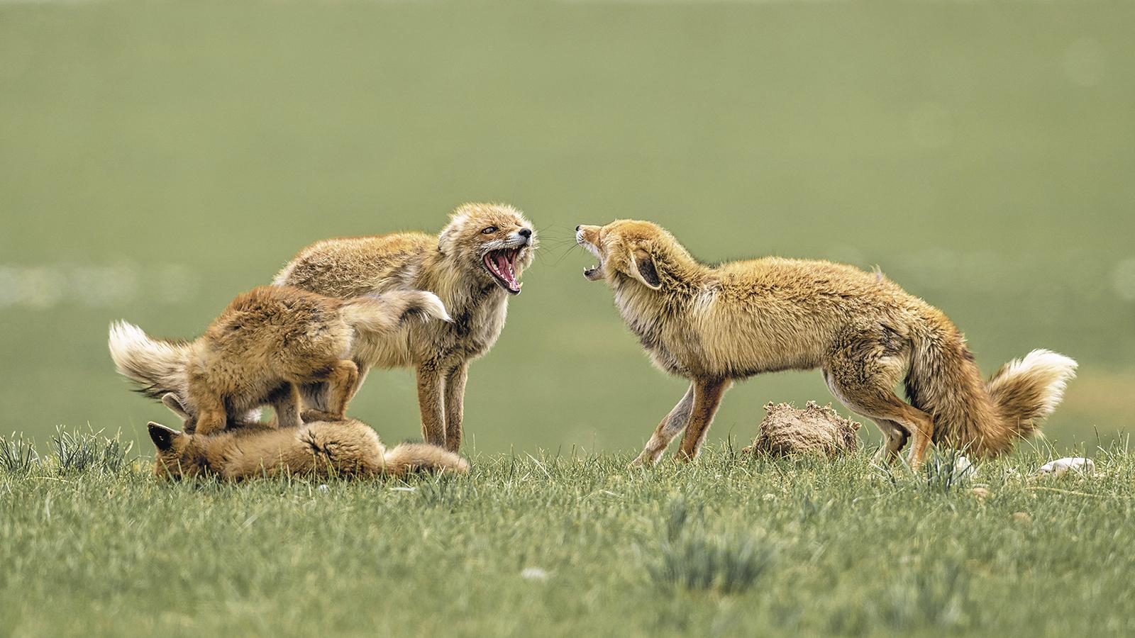 2020年揭晓的第56届世界野生生物摄影师年赛(WPY)上,李善元凭借作品《当妈妈说跑步前进》一举夺得哺乳类动物行为组冠军。这幅作品生动定格了兔狲一家的惊险时刻:悠闲觅食的一家突遇天敌藏狐,警惕的母亲发出信号,幼崽们瞬间奔跑躲避。